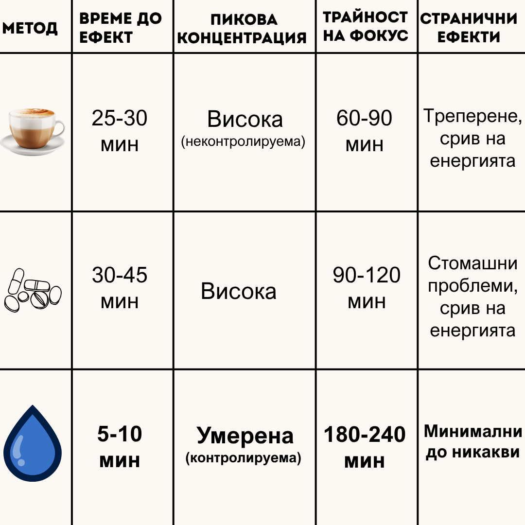 - Докато чакаш 20-30 минути да подейства, вече си загубил фокус