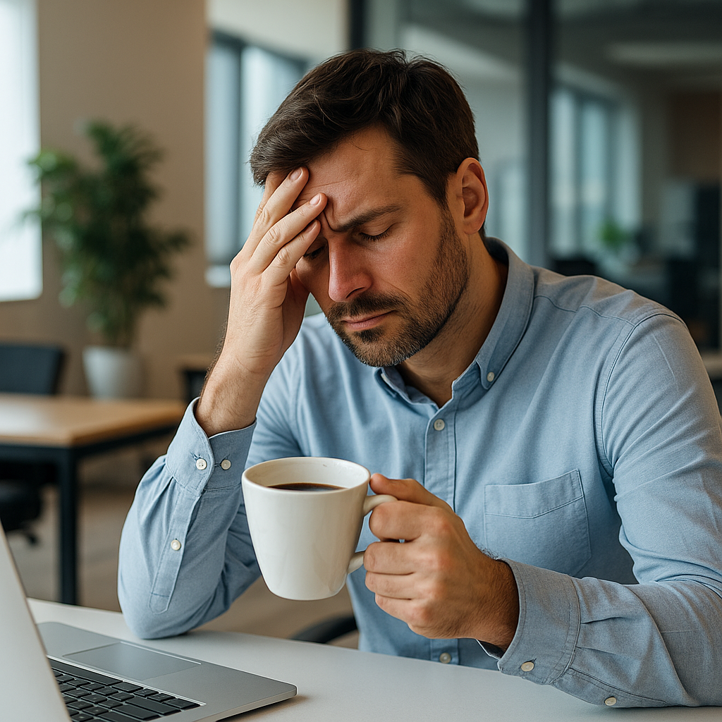 Когато кофеинът се изчисти, целият натрупан аденозин удря наведнъж. Плюс завишеният кортизол те кара да се чувстваш нервен и разфокусиран. Резултат?