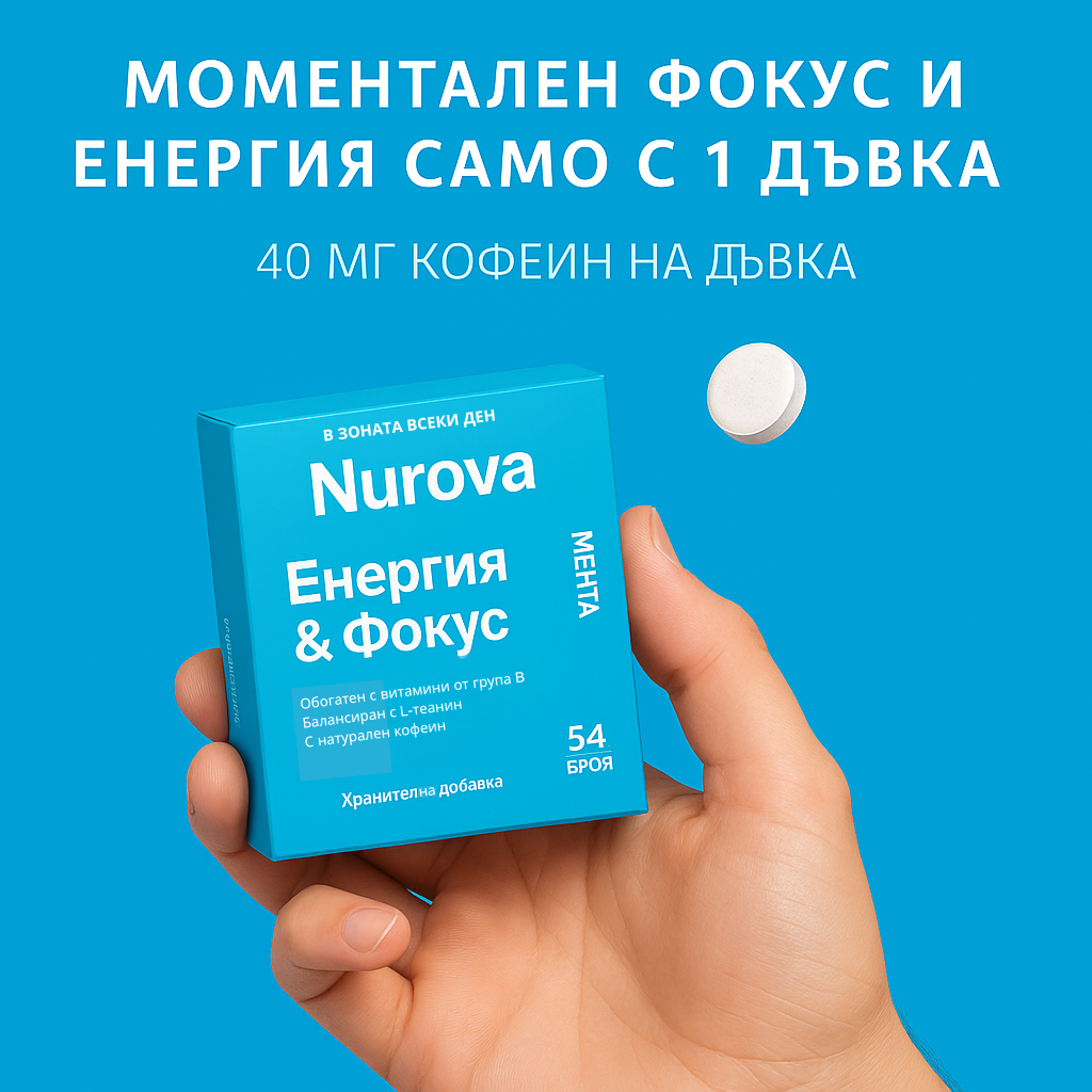Nurova™ е първата българска енергийна дъвка, създадена специално за когнитивна производителност.